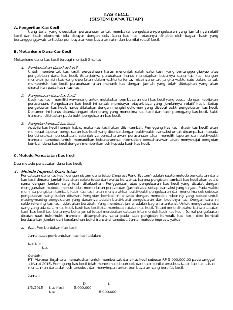 Materi Dana Kas Kecil Ajar Pdfmenggunakan Cek Prosedur Pengelolaan Pada Saat Pengeluaran Dana Kas Kecil Tidak