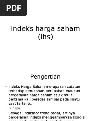 No information is available for this page.Learn why 25 Jan 2021 — Masih Dihantui Virus Corona, IHSG Merah. (CNBC Indonesia/Muhammad Sabki). Jakarta, CNBC Indonesia - Bursa Efek Indonesia resmi menerapkan ... 1. Indeks Harga Saham Gabungan (IHSG), yaitu indeks yang dimana semua perusahaan tercatat sebagai perhitungan indeksnya. IHSG dimiliki oleh Bursa Efek Indonesia, namun Bursa Efek Indonesia tidak bertanggung jawab atas produk yang diterbitkan oleh pengguna yang menggunakan IHSG sebagai acuan (benchmark).Dan juga selain itu Bursa Efek Indonesia tidak bertanggung jawab atas bentuk apapun dalam ...