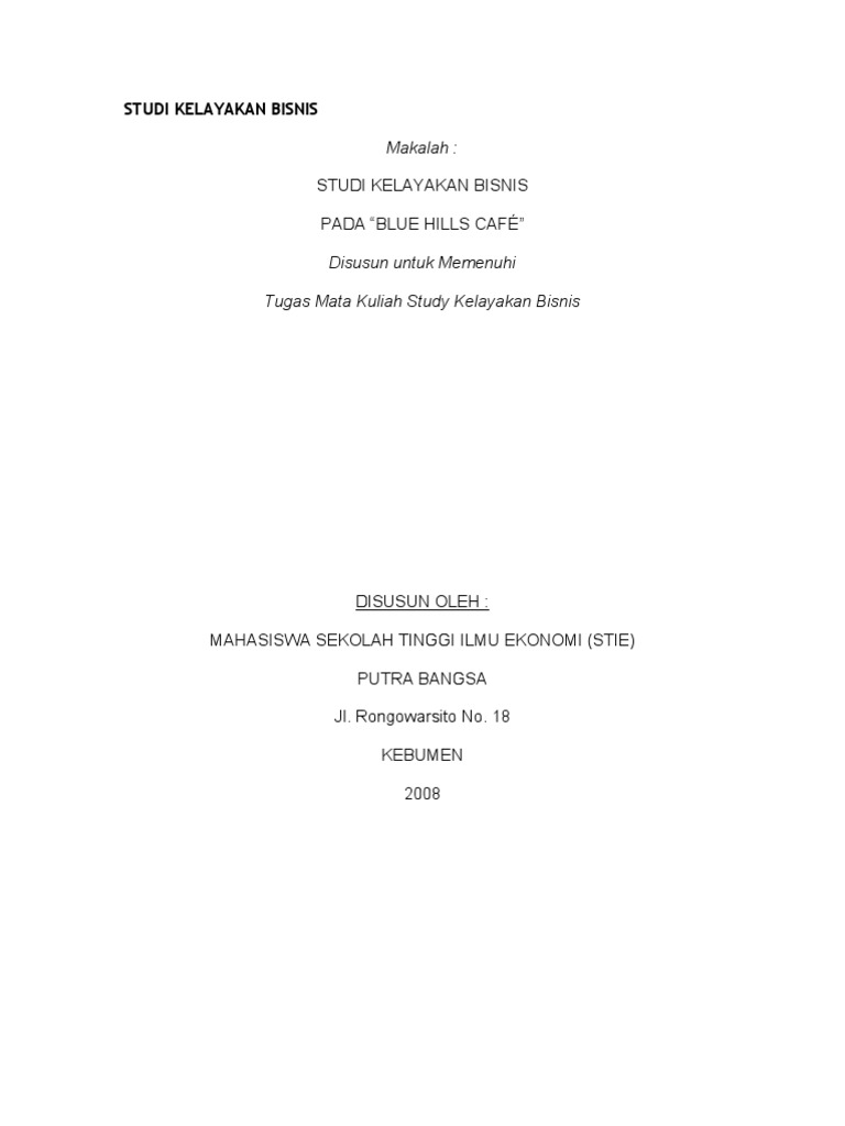 Makalah study kelayakan bisnis. Download Makalah Studi Kelayakan Bisnis PDF. Title, Makalah Studi Kelayakan Bisnis. Region. Format, PDF. Pages, 11. File Size, 1000.1 KB. Total Download, 0 ... Pengertian Studi Kelayakan Bisnis ... studi kelayakan bisnis pada usaha rumah makan ayam bakar ... 2013 - 2021 studylibid.com all other trademarks ... 2021-06-19 | Makalah Aspek Keuangan Dalam Studi Kelayakan Bisnis Pdf ... 2021-06-17 | Pdf Makalah Studi Kelayakan Bisnis Cafe Setelah draf bisnis dipilih urgen dibentuk kerangka buatan aplikasi jasa pembuatan studi kelayakan pendirian pekerjaan.