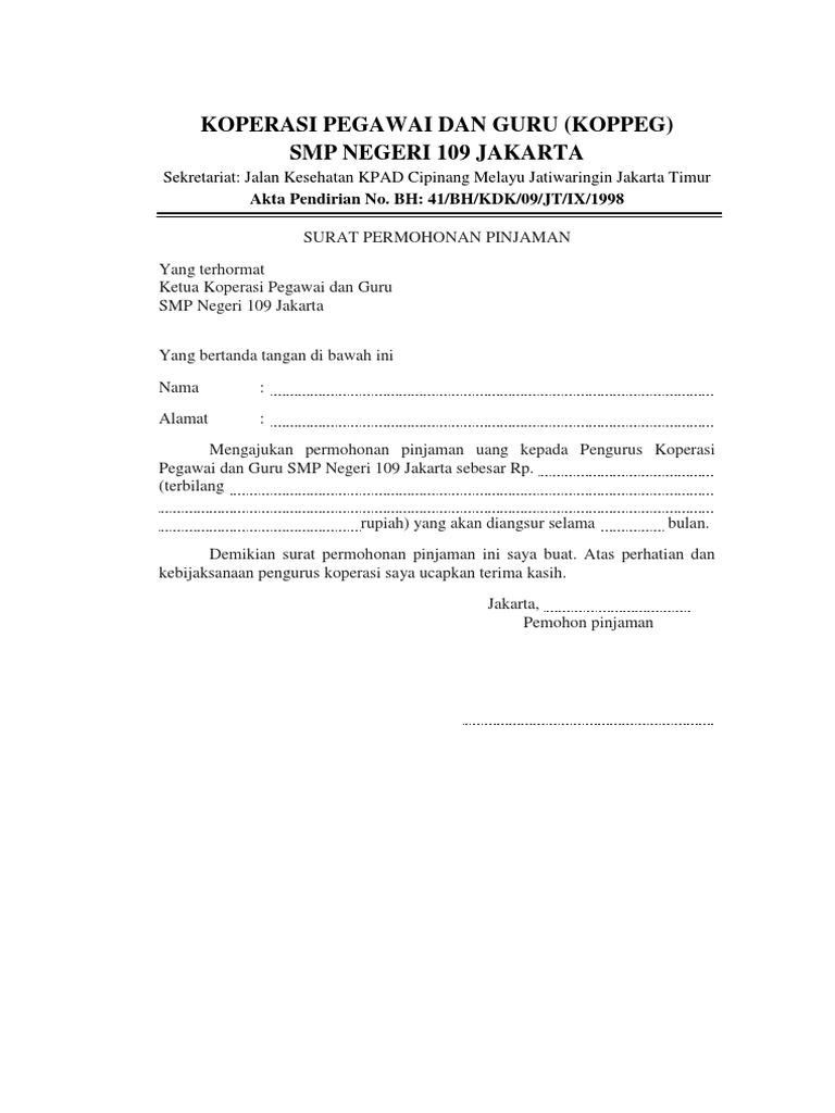 Lihat contoh surat pinjaman koperasi Contoh Surat Perjanjian Pinjaman pada Koperasi Warga SMK Surat 2350 surat surat niaga 0 Comments Membuat Surat Perjanjian Pinjam Meminjam untuk Keperluan Koperasi Kredit Dalam mengadakan hutang piutang maka keberadaan surat perjan. Demikian surat permohonan pinjaman ini saya buat.