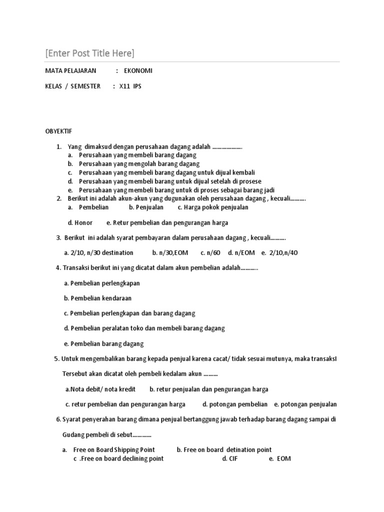 ... pembelian kredit barang lainnya, misalnya untuk pembelian perlengkapan dan peralatan, maka akan dicatat pada kolom debet akun perlengkapan dan kredit ... Contoh jurnal pembelian dan jurnal penjualan berisi soal soal dan jawaban dengan penjelasan lengkap. Pada tanggal 4 juni 2018 pt go berkah membeli barang dari toko thomas jaya senilai rp 9250000 secara kredit. Sedangkan untuk pembelian perlengkapan dan peralatan maka akan dicatat pada kolom debet akun perlengkapan dan kredit akun utang dagang. See Page 1. tersebut di atas. JAWABAN 1. Pembelian perlengkapan secara kredit seharga Rp. 630.000,- telah dicatat dalam perkiraan yang bersangkutan sebesar Rp. 603.000,- Debit Kredit Perlengkapan 27.000 Utang Usaha 27.000 2. Pembelian peralatan secara kredit seharga Rp. 16.000.000,- telah dicatat sebagai pembelian tunai perlengkapan.