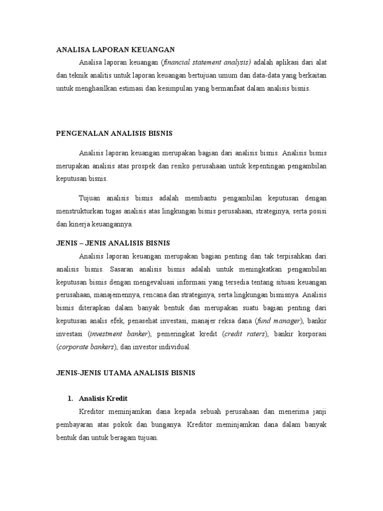 Analisis kredit dalam analisis laporan keuangan