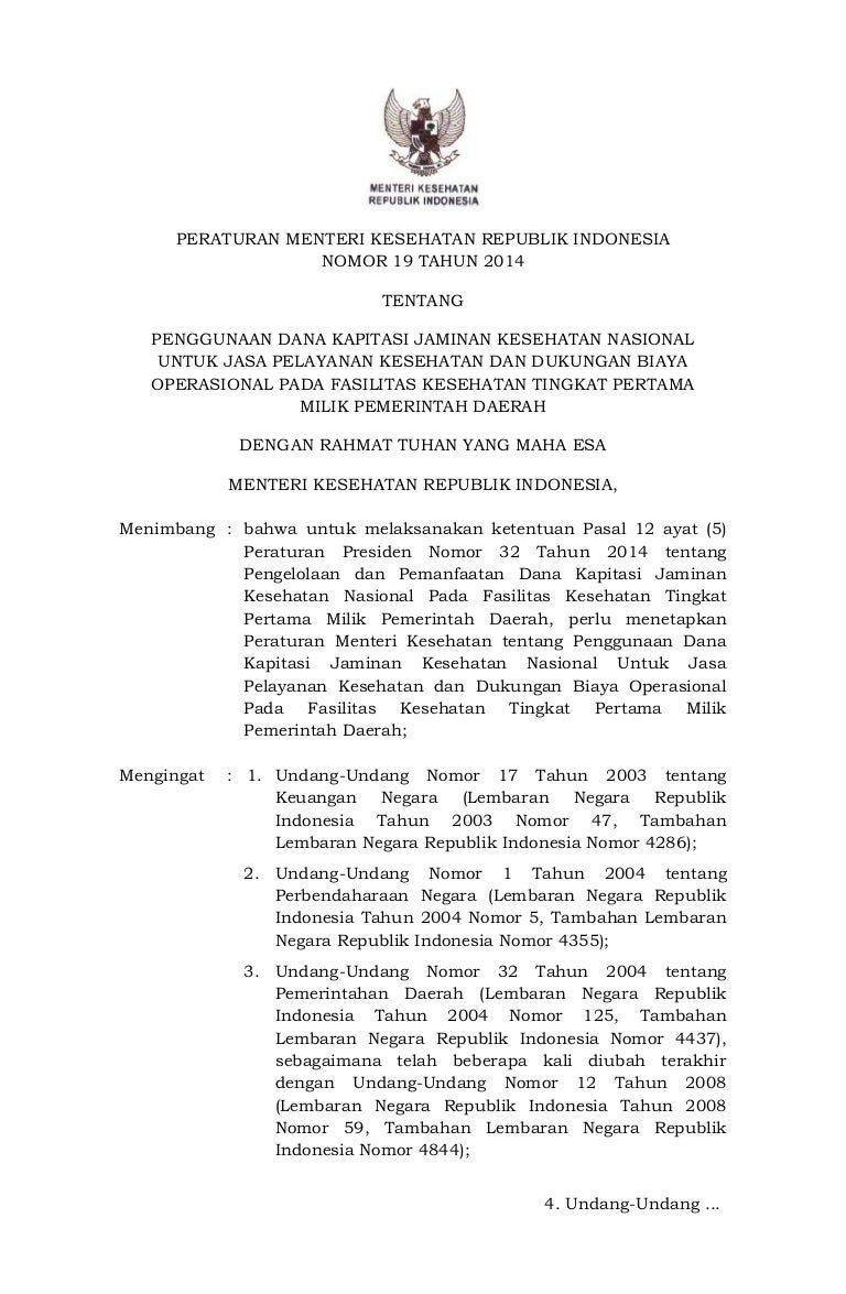 mengenai penggunaan dana kapitasi jaminan kesehatan nasional untuk jasa pelayanan kesehatan dan ... (3) Pembagian jasa pelayanan kesehatan kepada tenaga.
