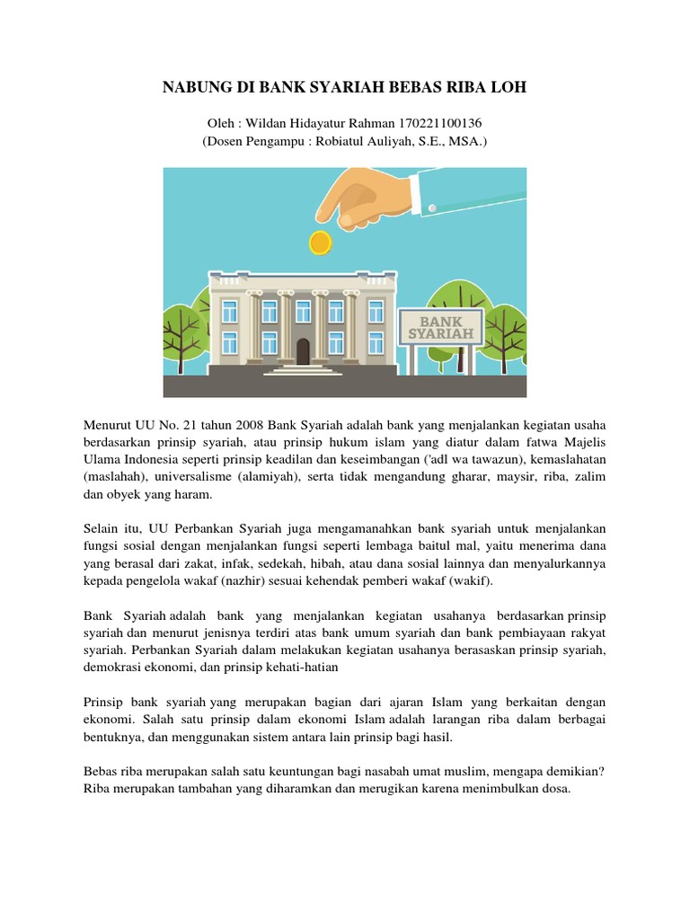 39 apakah bank syariah riba - Info Perbankan Hari Ini Dapat disimpulkan bahwa bank Syariah ternyata tidak termasuk riba karena dilihat dari definisi adalah menguntungkan kedua pihak. Jadi asalkan selama tidak adanya nilai lebih ketika anda mengembalikan sejumlah uang pinjaman diperbolehkan. Riba dapat terjadi pada segala jenis transaksi termasuk transaksi pada produk bank syariah. Bank Syariah Disebut Riba, Ini Kata Ustaz Yusuf Mansur Sejumlah kalangan yang menilai praktik bisnis bank syariah masih sama dengan bank konvensional, yakni mengandung unsur riba. Benarkah demikian?