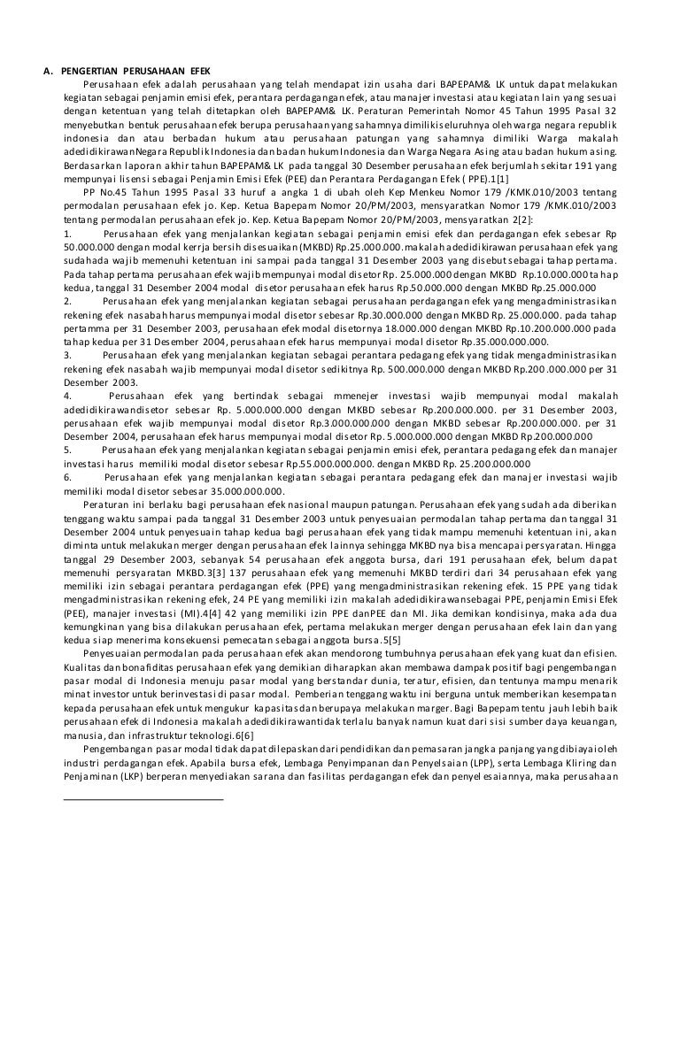 Perusahaan Efek | PDF Dalam praktek ciri-ciri perusahaan efek adalah tercantum nama sekuritas di belakang nama PT, contohnya PT Mandiri Sekuritas, PT. Perusahaan efek ini dapat berbentuk perusahan efek nasional ataupun perusahaan efek patungan. Dengan membeli saham atau unit penyertaan di reksadana investor akan terbantu oleh keahlian Dari fungsi tersebut reksa dana tidak hanya akan menerima dana dari orang kaya atau investor...