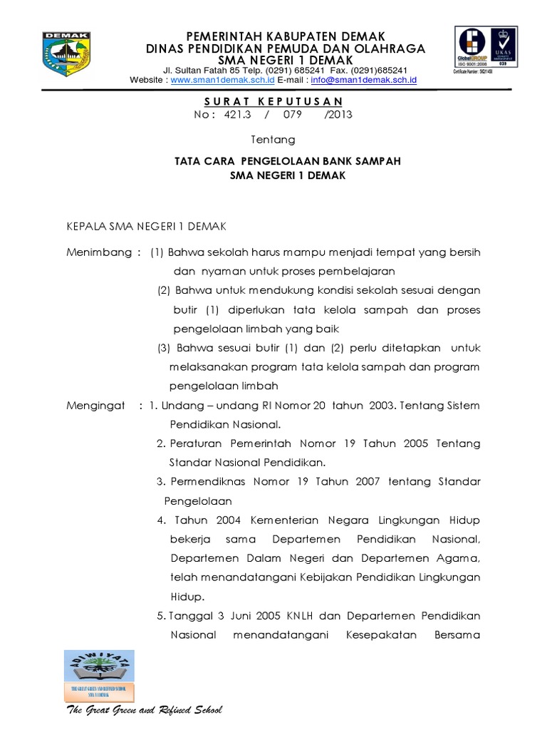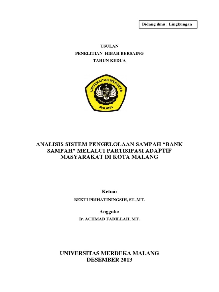 (PDF) BANK SAMPAH SEBAGAI ALTERNATIF STRATEGI ... BANK SAMPAH SEBAGAI ALTERNATIF STRATEGI PENGELOLAAN SAMPAH BERBASIS MASYARAKAT DI TASIKMALAYA (Bank Sampah (Waste Banks) as an Alternative of ... Download Contoh Perdes Pengelolaan Sampah 2021 | FORMAT ... Perdes Pengelolaan Sampah adalah Peraturan Desa yang mengatur tentang pengelolaan sampah di Desa, setelah dibahas dan disepakati bersama antara Pemerintah Desa dan Badan Permusyawaratan Desa (BPD). Apakah Anda mencari contoh Perdes tentang Pengelolaan Sampah atau Bank Sampah? Baik dalam bentuk format Doc (Word) maupun PDF terbaru? Pengelolaan Sampah di Kota Bertipe Sedang: Studi Kasus di ... Menggunakan wawancara mendalam dengan Dinas Lingkungan Hidup dan pelaku bisnis bank sampah di dua kota tersebut, dan melalui pengamatan langsung, penulis menemukan fakta bahwa pengelolaan sampah di kedua kota masih menerapkan pola 3P (pengumpulan, pengangkutan, dan pembuangan). Ijcit - Bsi sampah. Salah satu cara pengelolaan sampah adalah dengan memberdayakan masyarakat dalam menyelesaikan masalah sampah melalui bank sampah. Pengelolaan data bank -bank sampah yang ada di Cianjur umumnya masih menggunakan cara manual dengan hanya menggunakan pencatatan pada buku -buku dan belum memanfaatkan teknologi informasi.