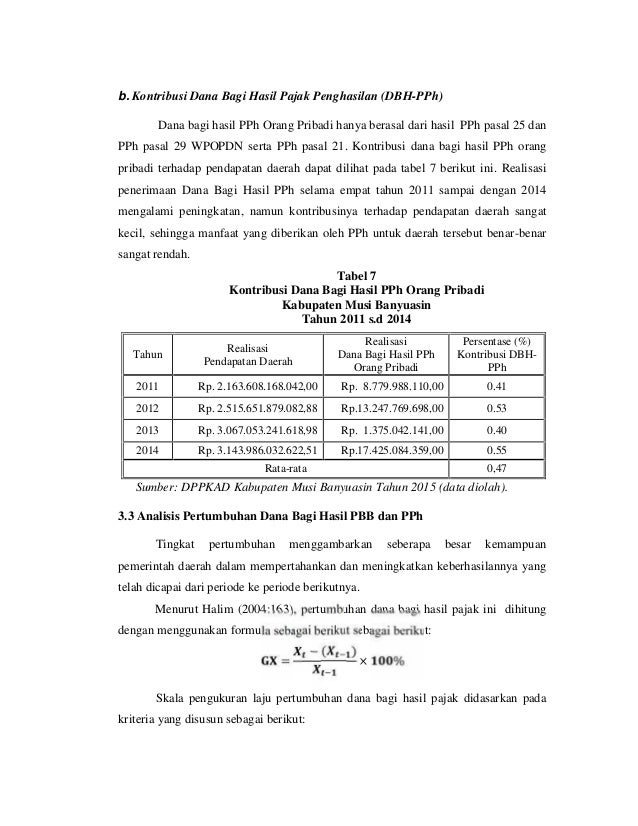 Dec 21, 2017 · Dana Bagi Hasil (DBH) Pajak. Dana Bagi Hasil (DBH) Pajak terdiri atas 3 (tiga) jenis, yaitu: 1. DBH Pajak Bumi dan Bangunan (DBH PBB) merupakan bagian dari Transfer ke Daerah yang berasal dari penerimaan PBB yang dikenakan atas bumi dan bangunan, kecuali Pajak Bumi dan Bangunan perdesaan dan Perkotaan. 2. DBH Pajak Penghasilan (DBH PPh) adalah ...