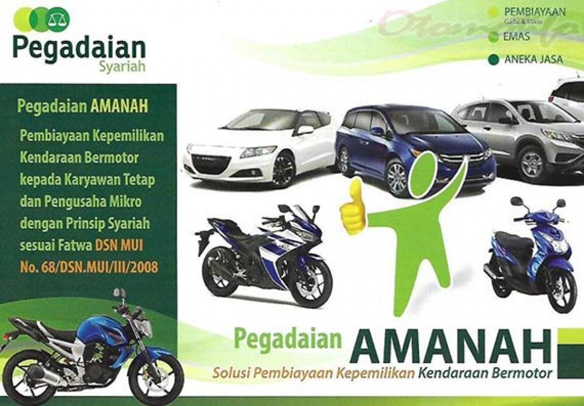 Cara kredit motor di Pegadaian atau belimotor di Pegadaian ... Kelebihan Amanah, Kredit Motor di Pegadaian. Program pembiayaan kendaraan bermotor ini menarik minat masyarakat karena Pegadaian menghadirkan berbagai keunggulan. Pegadaian kredit motor dan mobil ini menggunakan prinsip syariah, sehingga tidak diterapkan sistem bunga. Pegadaian menerapkan biaya pemeliharaan barang (mu'nah) sebesar 0.9% dari ...