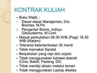 PDF PENGANTAR BISNIS - Web UPI Official pengantar bisnis. pokok pembahasan ... aturan perkuliahan (sekilas) silabus buku referensi . silabus 1 1. konsep dasar bisnis 2. lingkungan bisnis 1 3. lingkungan bisnis 2 4. etika bisnis dan tanggung jawab sosial organisasi bisnis 5. organisasi bisnis dan kewirausahaan 1 6. organisasi bisnis dan kewirausahaan 2