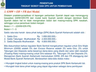 Bank Kalsel - Mekanisme Penghitungan Bagi Hasil Dana Pihak ... Mekanisme Penghitungan Bagi Hasil Dana Pihak Ketiga MEKANISME DAN TATA CARA PERHITUNGAN BAGI HASIL DANA PIHAK KETIGA PADA BANK KALSEL UNIT USAHA SYARIAH. 1. Bagi hasil dihitung berdasarkan methode Pooling of Fund dengan sistem net reveneu sharing. 2. Perhitungan bagi hasil dilakukan dengan langkah :