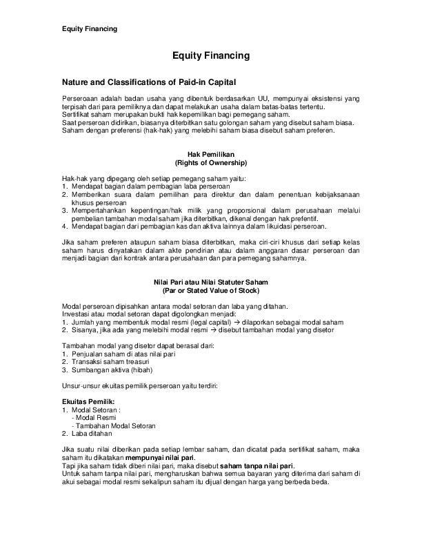 Saham Biasa dan Saham Preferen Saham adalah satuan nilai atau pembukuan dalam berbagai instrumen finansial yang mengacu pada bagian kepemilikan sebuah perusahaan. Dengan menerbitkan saham, memungkinkan perusahaan-perusahaan yang membutuhkan pendanaan jangka panjang untuk 'menjual' kepentingan dalam bisnis...