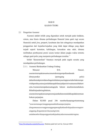 Asuransi Kesehatan Berdasarkan Undang-undang Nomor 3 Tahun ... Pengertian asuransi tersebut di atas disebut asuransi sukarela. Selain asuransi sukarela juga dikenal asuransi wajib atau sosial, dimana keberadaannya bersifat wajib berdasarkan peraturan perundang-undangan Pengertian asuransi menurut Pasal 246 KUHD dan Pasal 1 (1) UU No. 2/1992 merupakan perjanjian antara tertanggung dengan penang- PDF Manajemen Resiko Dan Asuransi - Unpam Universitas Pamulang Manajemen S-1 Manajemen Risiko ii MANAJEMEN RESIKO DAN ASURANSI Penulis : Veta Lidya Delimah Pasaribu, S.E., M.M. Krisnaldy, S.E., M.Si.