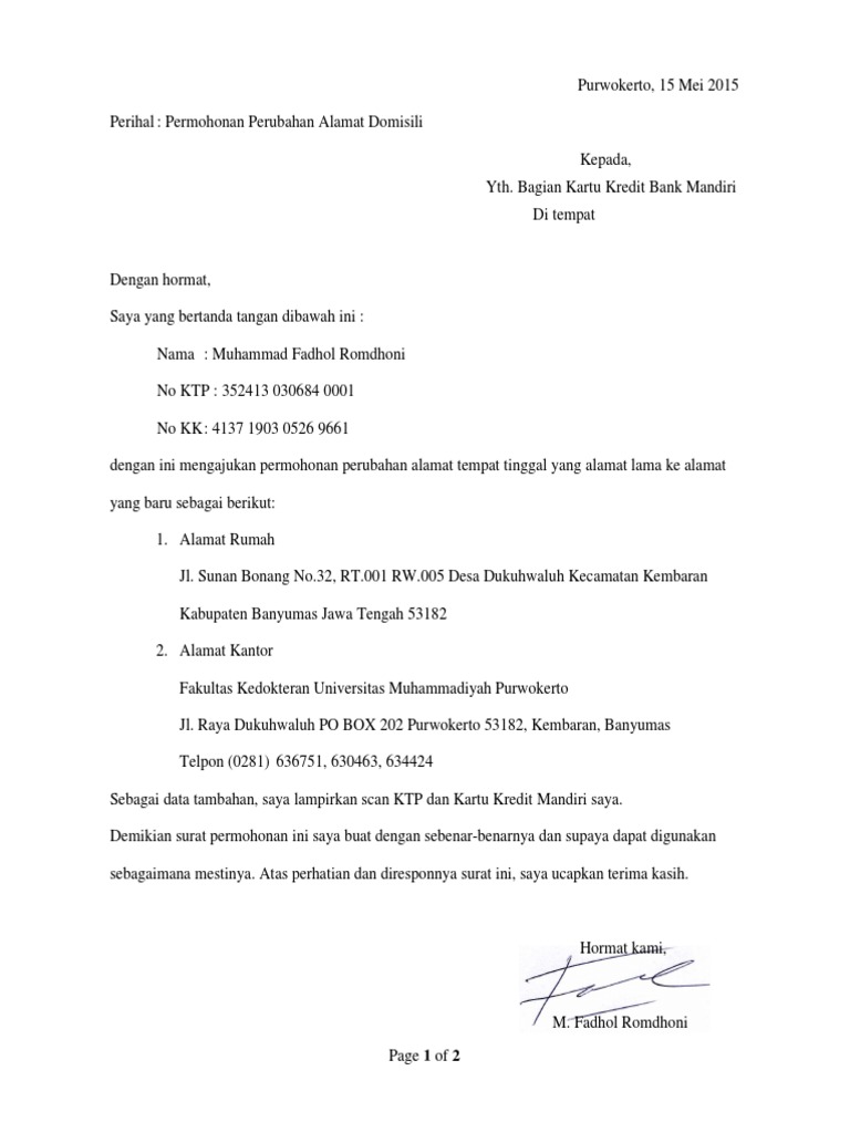 Surat pernyataan bank mandiri. PDF SURAT PERNYATAAN - Mandiri Kartu Kredit Bank Mandiri Up. Customer Service Card Center Plaza Bapindo, Menara Mandiri Lt.10 Jl. Jend. Sudirman kav. 54-55 Jakarta 12190 ... Apabila surat pernyataan ini telah ditandatangani, mohon dapat dikirimkan kembali kepada kami dalam format pdf (tidak melebihi 2 MB) melalui faksimili ke nomor 021-5267370/ 52997722, atau ... Bantuan - Bank Mandiri • Siapkan surat pernyataan dengan materai, KTP, dan Buku Tabungan. • Petugas Bank Mandiri akan melakukan blokir terhadap kartu lama. • Petugas Bank Mandiri melakukan proses penggantian Kartu Debit. + Berapa biaya penggantian kartu debit yang tertelan di ATM? Penggantian kartu karena kartu tertelan di ATM tidak dikenakan biaya Contoh Surat Pernyataan Di Bank Bri - Contoh Surat Contoh Surat Kuasa Pengambilan Uang Di Bank Mandiri. 12 Contoh Surat Kuasa Pengambilan Umum Khusus Beserta Pengertian Dan Fungsinya. Contoh Surat Pernyataan Ke Bank Mandiri The Story Will Never End Jalan Jalan Ke Korea Membuat. Contoh Surat Pernyataan Penghasilan Format E1 Untuk Kpr. Contoh Surat Permohonan Pembukaan Rekening Bank Mandiri Download Contoh Surat Permohonan Pembukaan Rekening Bank Mandiri. Download format surat lain: Contoh Surat Permohonan Pembukaan Rekening LSM Di Bank Format 1130 x 1600. Contoh Surat Persetujuan Pembukaan Rekening RPL Blog Format 555 x 768 pixel. Download Contoh Permohonan Pembukaan Rekening Baru BOS BOP SEO SUNDA Format 802 x 421 pixel.