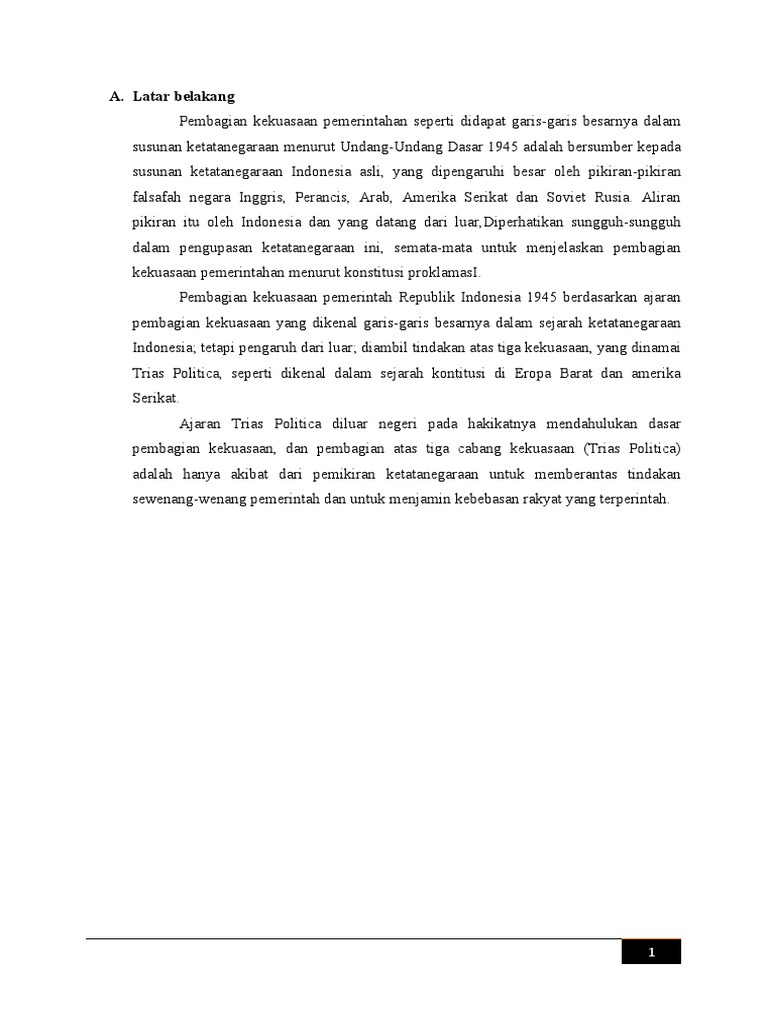 Pembagian Kekuasaan di Indonesia - Freedomnesia Kekuasaan ini dijalankan oleh Bank Indonesia selaku bank sentral di Indonesia sebagaimana ditegaskan dalam pasal 23D UUD 1945 yang menyatakan bahwa "Negara memiliki suatu bank sentral yang susunan, kedudukan, kewenangan, tanggung jawab, dan independensinya diatur dalam undang-undang."