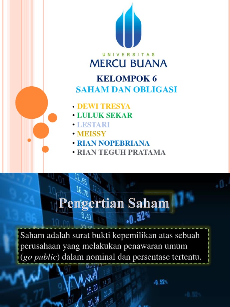 This is me!: PENILAIAN SAHAM DAN OBLIGASI (TUGAS MANAJEMEN ... pengertian saham dan obligasi Saham adalah surat-surat berharga yang diperdagangkan di pasar modal atau sering disebut efek atau sekuritas. Saham juga dapat didefinisikan tanda penyertaan atau kepemilikan seseorang atau badan dalam suatu perusahaan atau perseroan terbatas.